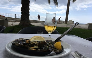 Casa de Pedra in Madalena do Mar - best local eatery with Lapas (Grilled Limpets) and shared platters of fish at affordable prices. Located by the beach, with upstairs veranda tables offering sunset views. Best dish: espada fish de escabeche (delicious onion sauce). Huge portions, so choose wisely!