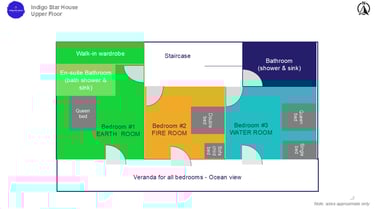 It has a very spacious wardrobe. The windows go onto an all-bedroom veranda looking out to the Ocean.