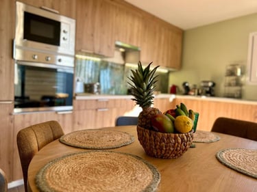Fully equipped kitchen with everything needed to cook your own meals.