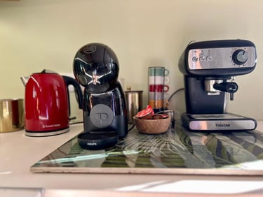 We also included some basic products like sugar, salt, tea, coffee, rice, pasta, herbs and spices to save you from buying everything from scratch. We have these COFFEE machine types: an Italian Moka pot/ percolator, high-pressure machine, Nescafe Dolce Gusto capsules.